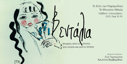 Το Σπίτι των Παραμυθιών – Το Μουσείο Αλλιώς σας προσκαλεί το Σάββατο 6η Δεκεμβρίου 2025, ώρα 20:30, στη «Βεντάλια», μια παράσταση με τη Χριστίνα Βερβερίδου και τη Εύη Γεροκώστα με Ιστορίες από το τίποτα, στο τίποτα και για το τίποτα
