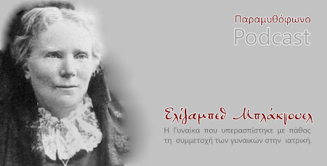 8 ΜΑΡΤΙΟΥ 2021, ΗΜΕΡΑ ΤΗΣ ΓΥΝΑΙΚΑΣ Η ιστορία της Ελίζαμπεθ Μπλάκγουελ αφιερώνεται στις γιατρίνες και νοσηλεύτριες και όλες τις γυναίκες που αγωνίζονται στα νοσοκομεία, τους χώρους φροντίδας και περίθαλψης, τα ερευνητικά κέντρα, για να αντιμετωπίσουν την πανδημία. Η Ελίζαμπεθ Μπλάκγουελ υπήρξε μια δυναμική γυναίκα που πάλεψε για το όνειρό της και την ιατρική επιστήμη, την υγεία και τη ζωή των ασθενών της, την ιατρική εκπαίδευση των γυναικών. Ακούστε την ιστορία και διαβάστε περισσότερα